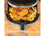 Funkce XXL horkovzdušná fritéza s objemem 6,5 litru pro celé grilované kuře a až 1,5 kg hranolků Více chuti, méně tuku: smažení, vaření, pečení, rozmrazování a sušení bez přidání oleje nebo tuku 8 přednastavených programů pro hranolky, kuřecí křídla/stehna, ryby, hovězí steak a kotlety, nastavitelná teplota od deg a sušené ovoce 200 °C v krocích po 5 °C (40 - 80 °C pro program sušené ovoce) Nastavitelný čas od 1 min. do 60 min. (2 - 9 hodin pro program sušené ovoce) Dotykový ovládací panel Výkon 1800 W, velmi tichý provoz Technické údaje Napájení: 220-240V~, 50-60Hz Příkon: 1800 Watt Délka napájecího kabelu: cca. 100 cm Hmotnost: cca. 4,65 kg Rozměry: cca. 343 mm x 290 mm x 298 mm (délka x šířka x výška) Nastavitelná teplota: od 40 °C do 200 °C v krocích po 5 °C (40-80 °C pro program sušené ovoce) Nastavitelný čas: od 1 minuty do 60 minut (program Litrový výkon sušeného ovoce 6 hodin) 5 hodin 1800 Maximální kapacita na smažení (g) 1500 Objem fritovacího koše (l) 6,5 Počet košů 1 Počet programů 8 Typ panelu Elektronická Smart aplikace Ne Barva Černá, nerez Rozměry (cm) 34,3 x 29 x 29,8 Hmotnost (kg) 4,65