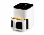 Vyzkoušejte horkovzdušnou fritézu a vychutnejte si křupavé hranolky, šťavnaté kuře a další chutné pokrmy s až o 80 % méně tuku. S kapacitou 3,5 l (800 g) a 10 automatickými programy je pečení ve fritéze velmi jednoduché. Nastavte teplotu mezi 60 °C až 200 °C, nastavte časovač až na 60 minut a funkci udržování teploty a o nic dalšího se již nemusíte starat. Když hotový pokrm z fritézy ihned nevyndáte, bude jej pro vás fritéza ještě dalších 30 minut udržovat příjemně teplý. Osvětlení vnitřního prostoru horkovzdušné fritézy, dotykový displej a okénko pro kontrolu během pečení vám pak přináší ještě více pohodlí při jejím používání. O vysokou bezpečnost při používání se postará cool-touch kryt a ochrana proti přehřátí.Základní parametry fritézy: