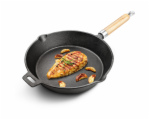 Trend návratu k původním, léty vyzkoušeným materiálům, se projevuje i v oblasti gastronomie a domácího vaření. S tím přichází i obliba litinového nádobí.Pánev z litiny průměru 25 cm vám pomůže při přípravě chutných pokrmů z masa, zeleniny i brambor. Po postupném zahřátí snese i vysoké teploty, maso se i na menším množství tuku rychle zatáhne a šťáva tak zůstane pěkně uvnitř.