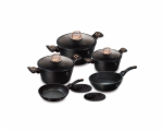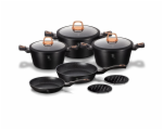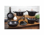 - Magicky černá sada nádobí ze série Black Rose zaujme nejen nepřehlédnutelným moderním designem, ale především svými jedinečnými vlastnostmi - doménou této sady je 3vrstvý povrch s mramorovým designem charakteristický svou dokonalou nepřilnavostí, žádné potraviny se nepřipalují a díky tomu se kastroly i pánve velice snadno čistí - zároveň je vhodný pro zdravé vaření s minimem tuku, v závislosti na použitých surovinách klidně i bez jediné kapky tuku - vnitřní i vnější vrstva neobsahují žádné škodliviny, výsledné pokrmy tak neztrácí vařením svoje vitamíny - zesílené nerezové Turbo indukční dno pro maximální efektivitu přípravy pokrmu - energeticky úsporné vaření zajišťuje korpus z odolného kovaného hliníku, který se rychle nahřívá po celém povrchu a má perfektní tepelnou vodivost - ušetříte až 35% energie a času oproti obyčejným nerezovým kastrolům - předností jsou také poklice z tvrzeného žáruvzdorného skla s nerezovým úchopem - jejich dokonalý tvar dobře přilne k tělu hrnce i pánví a integrovaný otvor přirozeně reguluje množství páry uvnitř nádoby - stejné velikosti poklic lze bez problému použít také na stejně velké pánve - ergonomicky tvarované rukojeti mají protiskluzovou měkčenou úpravu, díky které příjemně padnou do ruky a umožní pevný a bezpečný úchop - díky izolačním prvkům zůstávají rukojeti po celou dobu vaření chladné a nepálí - zaoblený přechod mezi dnem a stěnami usnadňuje promíchávání obsahu - tělo kastrolů i pánví je zakončené zesílenými okraji pro lepší odolnost vůči nárazům - celá sada je vhodná na všechny druhy sporáků i na indukci - vhodné k zapékání v troubě i s poklicí do maximální teploty 160°C - díky nadstandartním nepřilnavým vlastnostem je čištění rychlé a nenáročné, stačí omýt teplou vodou a houbičkou - lze mýt i v myčce nádobí, pro zachování dlouhotrvajícího bezvadného stavu se doporučuje šetrný program - hrnce lze podle velikosti vkládat do sebe, což je velmi výhodné při skladování - ideální pro každodenní vaření, dušení a smažení jakýchkoliv pokrmů - ECOfriendly, použité materiály neobsahují žádné škodliviny jako Pfoa, olovo ani kadmium - vysoce atraktivní moderní design v jedinečných metalických barvách - nádobí je díky svému perfektnímu designu vhodné také pro přímé servírování pokrmů na stůl - kolekce: Black Rose Collection - tuto sérii lze doplnit o spoustu jednotlivých kusů nádobí, příslušenství, sady nožů či spotřebičů - kompletní sada 10 ks obsahuje: - pánev 20 x 4,2 cm - hluboká pánev 24 x 6,8 cm - kastrol s poklicí 20 x 10 cm / 2,5 litru - kastrol s poklicí 24 x 12 cm / 4,1 litru - kastrol s poklicí 28 x 12,5 cm / 6,1 litru - 2x podložka pod horké nádobí