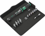 WERA Click Hexalobular Internal A 6 Set 1Click turning moment wrench in unmistakable Wera design. Very robust design with high accuracy according to DIN EN ISO 6789-1:2017-07. Easy adjustment and saving of the default value. The audible and tactile engagement when the scale values are reached additionally facilitates the safe setting of the desired torque value. The robust release mechanism triggers a clearly audible and tactile signal when the set torque is reached. For right-hand tightening and with reversible ratchet with 45 teeth. The Wera click torque wrench is supplemented by a wide range of accessories and thus forms this user kit. Included are: Click-Torque A 6, 1/4", 2.5 - 25 Nm, 6 nuts with 1/4" drive, 11 Hex-Plus hexagon socket, cross slot PH and TORX bits plus accessories consisting of extension and adapter.Features: easy adjustment and securing of the desired turning moment value with audible and tactile engagement when the scale values are reached (click 1) safely dosed force: the turning moment wrench triggers audibly and perceptibly when the set value is reached (click 2) the precision is +/- 4% according to DIN EN ISO 6789-1:2017-07 Set including nut adapter and extension robust, surface-protecting, compact textile box dimensions: 335 x 110 x 65 mm weight: 1115 g