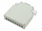 Malý kovový rozvaděč pro upevnění na DIN lištu . Dovoluje instalovat 8× SC simplex adaptér. Robustní kovové provedení, 4× vstup (2× zaslepený + 2× PG11). Kabel není nutno provlékat, lze i jen založit.